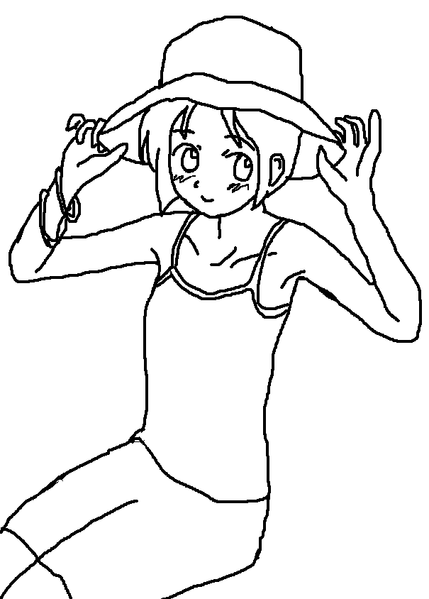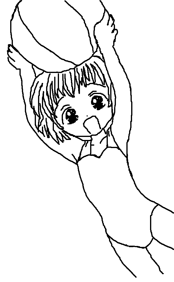 この絵は初めて、最後まで仕上げた絵です!使ったツールはWindowsのペイント。 マウスで書きました!(自分でやってて凄いと思った)これが下書きです。 手にあったわっかが消えています。 しのぶちゃんFCのTOPに載りました。感激!!